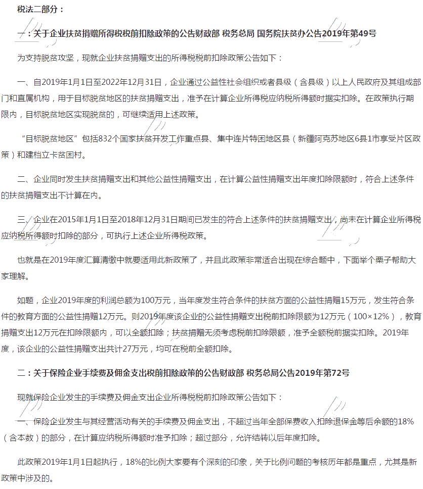2020年颁布的税务师考试大纲明确说明税法一和税法二科目考试适用的已颁布法律、法规、规章和规范性文件的截止日期为2020年3月31日。这就说明2020年税务师教材会收录2019年4月1日至2020年3月31日期间国家税务总局颁布的一系列新政策。现在让我们就截选其中相对重要且可考性比较高的几条政策来先学习一下吧。