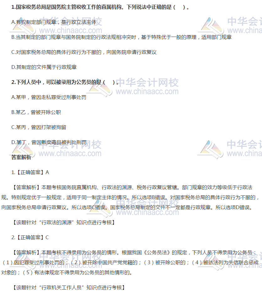 以下为2020年税务师考试《涉税服务相关法律》第一章——行政法律关系、行政主体的精选习题单选题。