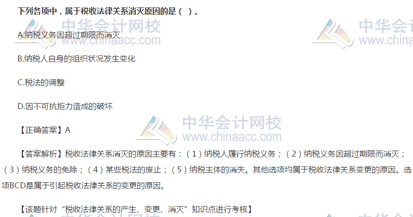 以下为2020年税务师考试《税法一》第一章——税收法律关系的产生、变更、消灭的单选题精选习题。