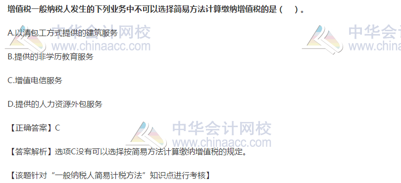 以下为2020年税务师考试《税法一》第二章增值税——一般纳税人简易计税方法的单选题精选习题。