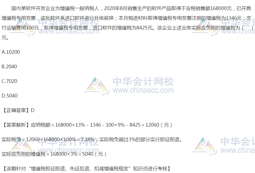 以下为2020年税务师考试《税法一》第二章增值税——增值税即征即退、先征后退、扣减增值税规定的单选题精选习题。