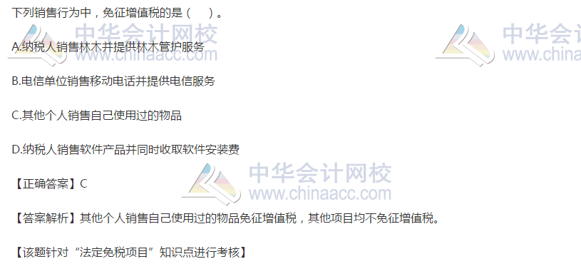 以下为2020年税务师考试《税法一》第二章增值税——法定免税项目的单选题精选习题。