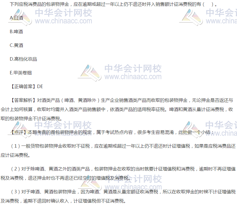 第三章(消费税):包装物押金的规定