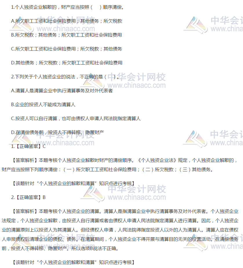 第十一章(个人独资企业法律制度):个人独资企业的解散和清算