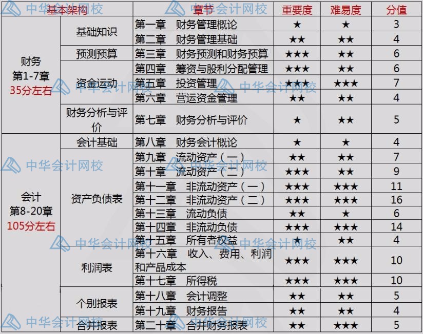 下表清晰地展示了每一章节的重要度、难易度以及对应的分值。