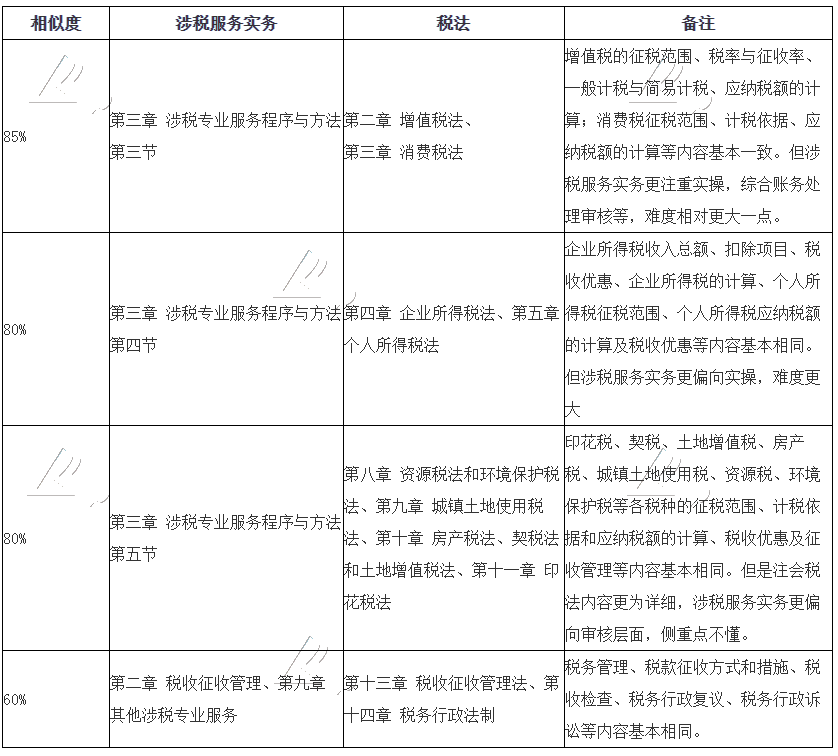 正保会计网校整理了税务师考试和注册会计师考试相关科目的相似内容,并进行了对比分析,供大家参考。以下是税务师《涉税服务实务》科目和注册会计师《税法》科目的对比内容,希望可以对大家的备考有所帮助!