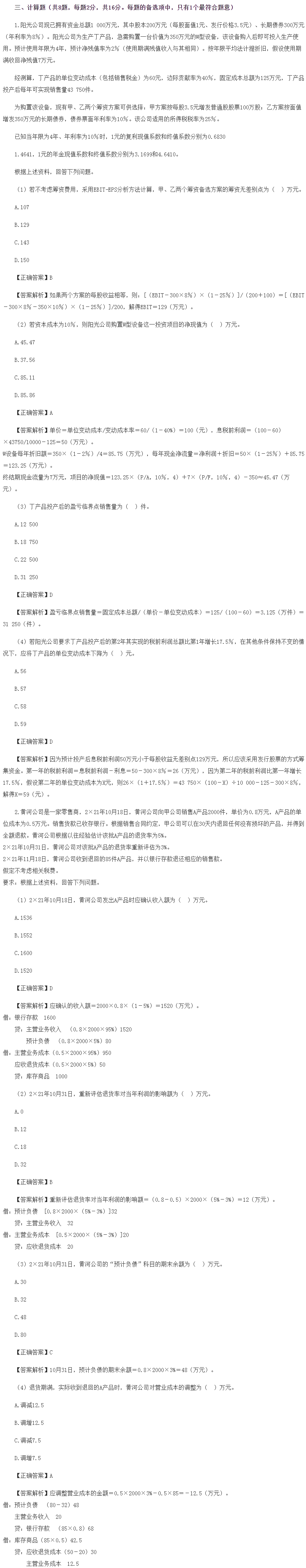 声明:本套试卷为正保会计网校教研团队编订,严禁转载!