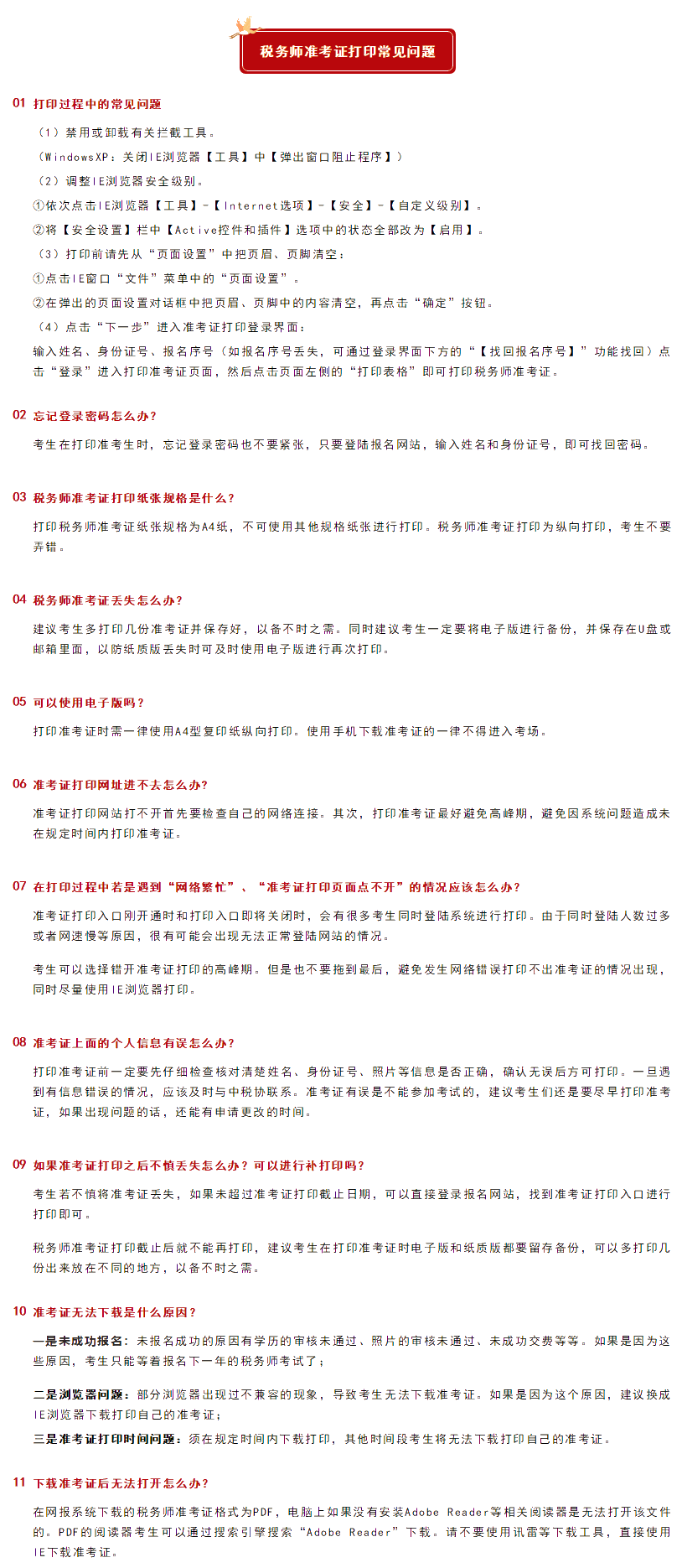 2021年税务师延考地区准考证打印时间为2022年1月3日9:00至1月9日15:00。小编参考第一批参加考试的考生比较关注的问题,将关于准考证打印的相关事宜进行了汇总,送给延考的小伙伴儿们!提前了解,有备无患!