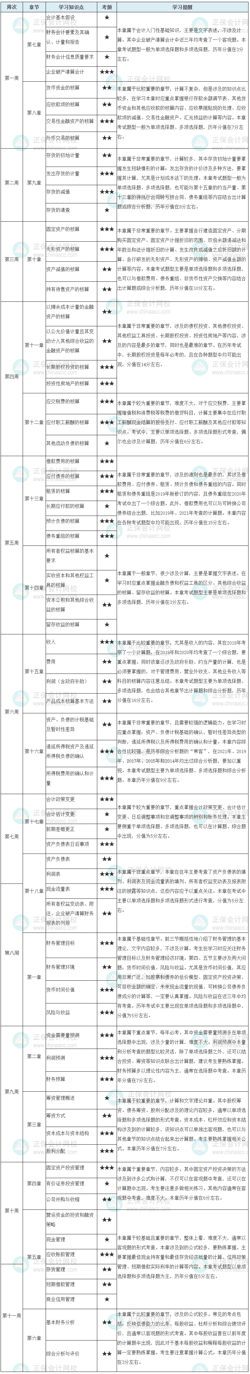 税务师《财务与会计》11周预习计划表