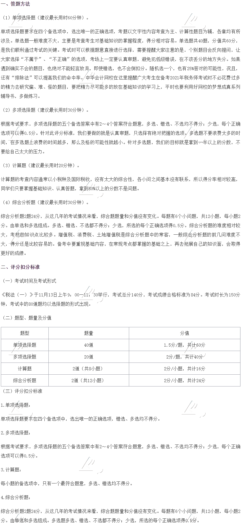 网校为大家整理了税务师《税法一》各题型答题方法,包括评扣分标准和建议用时,一起来看看吧~