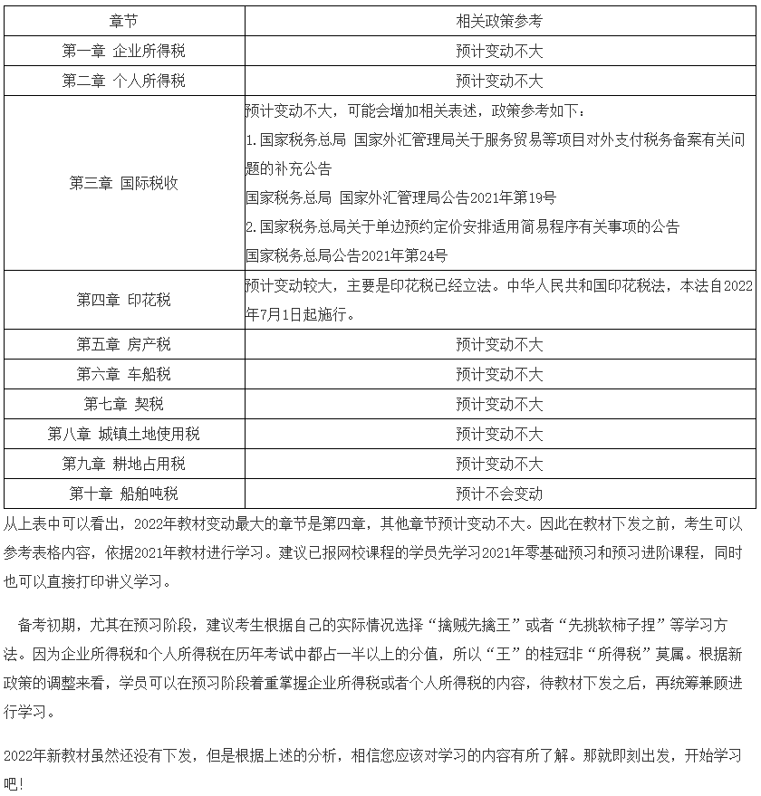 下一篇:2022年税务师《税法二》考试教材变动预测
