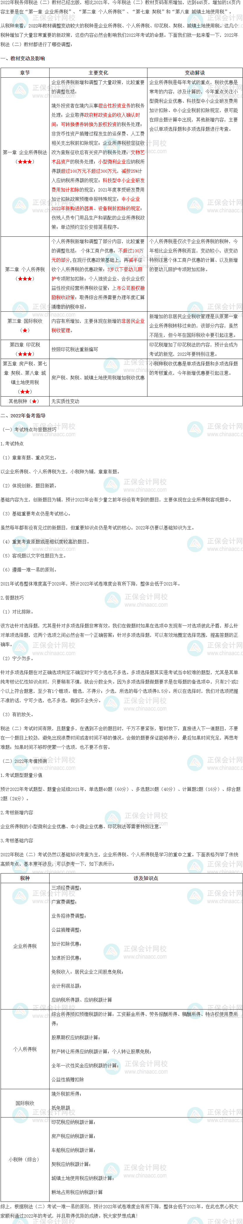 2022税务师《税法二》教材变化解读