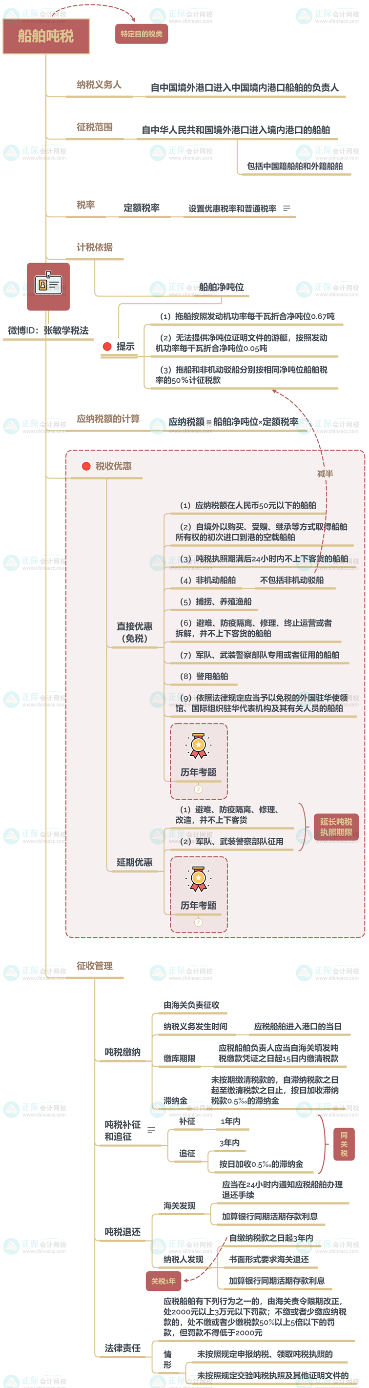 备考税务师,总觉得知识很零散,没有一个整体框架?别急,正保会计网校为大家整理了思维导图,大家可以借助思维导图给自己建立整体框架,高效复习。以下是小税种——船舶吨税的思维导图,来看看~