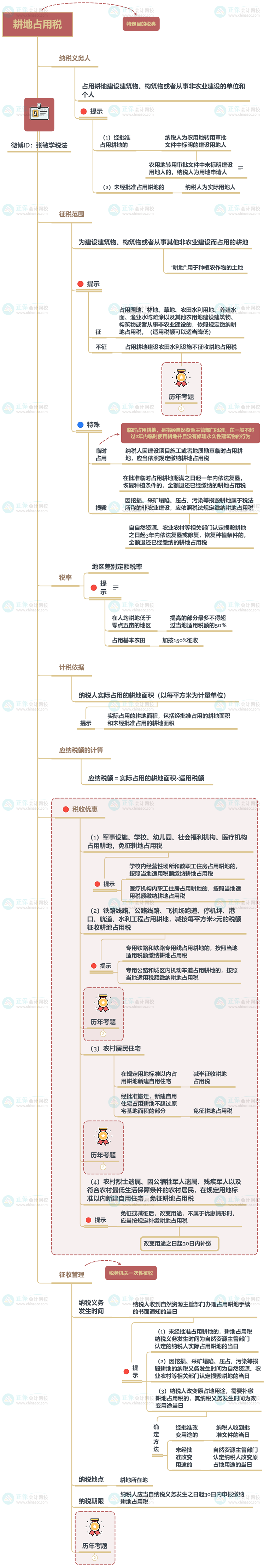 备考税务师,总觉得知识很零散,没有一个整体框架?别急,正保会计网校为大家整理了思维导图,大家可以借助思维导图给自己建立整体框架,高效复习。以下是小税种——耕地占用税的思维导图,来看看~