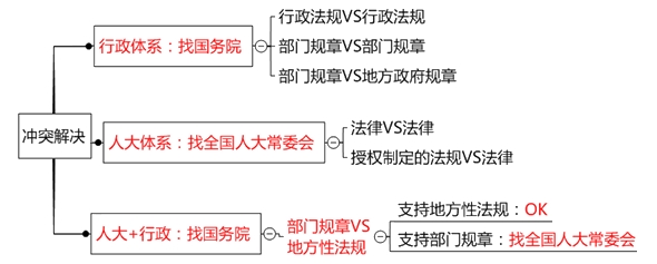 【总结】口诀:基本法律找人大,诉讼处罚所得税;行政法规国务院,条例细则有规定;部门规章委行属,办法规则要记牢。