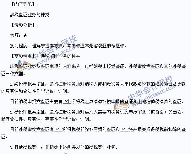 我们一起来学习2014《税务代理实务》高频考点:涉税鉴证业务的种类。本考点属于《税务代理实务》第三章涉税服务和涉税鉴证第二节涉税鉴证。