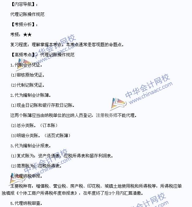 我们一起来学习2014《税务代理实务》高频考点:代理记账操作规范。本考点属于《税务代理实务》第六章建账建制代理记账实务第二节代理建账建制的基本内容和操作规范。