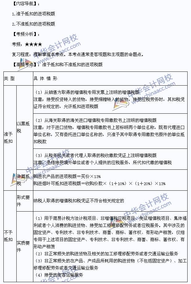 我们一起来学习2014《税务代理实务》高频考点:准予抵扣和不准抵扣的进项税额。本考点属于《税务代理实务》第九章货物和劳务纳税申报代理和纳税审核第一节增值税纳税申报代理。