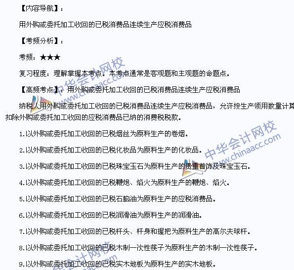 我们一起来学习2014《税务代理实务》高频考点:用外购或委托加工收回的已税消费品连续生产应税消费品。本考点属于《税务代理实务》第九章货物和劳务纳税申报代理和纳税审核第三节消费税纳税申报。
