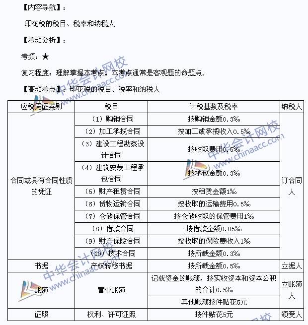 我们一起来学习2014《税务代理实务》高频考点:印花税的税目、税率和纳税人。本考点属于《税务代理实务》第十一章其他税种纳税申报和纳税审核第二节印花税、土地增值税纳税审核。