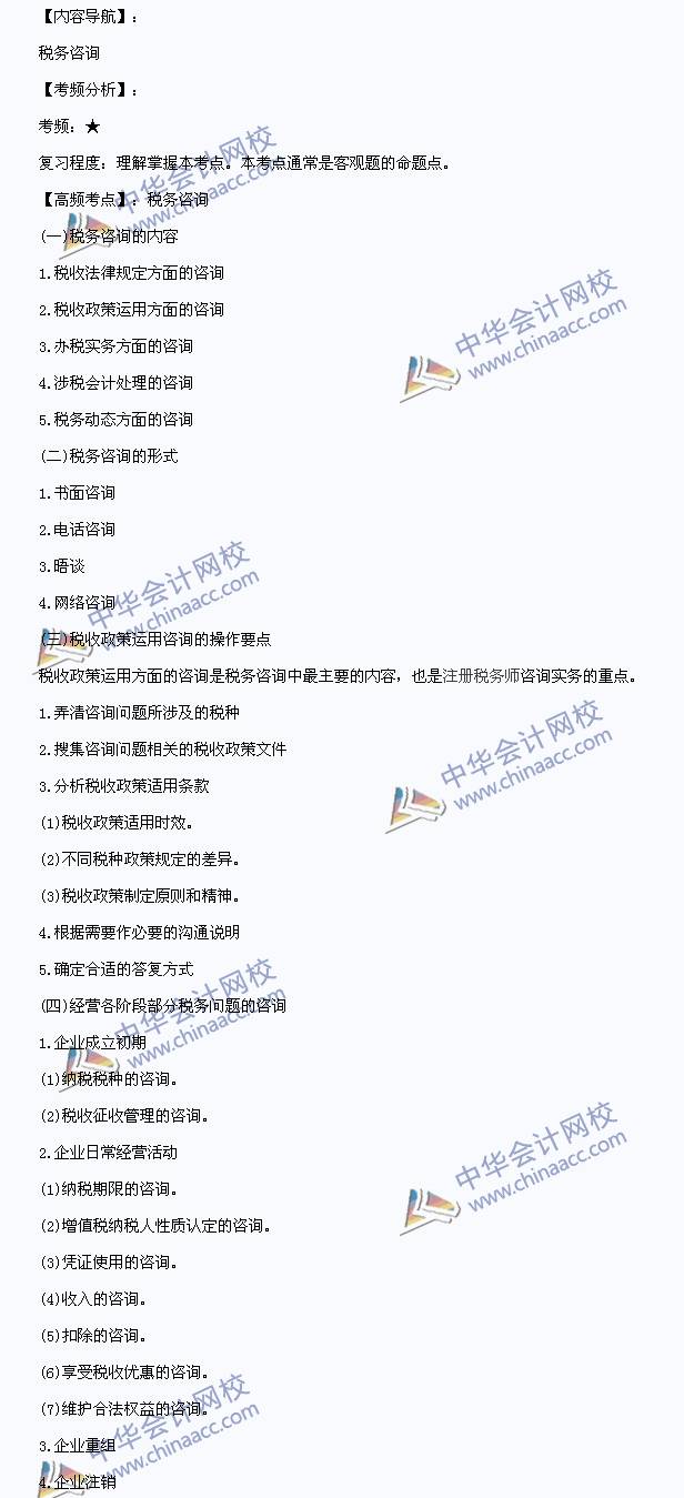 我们一起来学习2014《税务代理实务》高频考点:税务咨询。本考点属于《税务代理实务》第十三章税务咨询与税务顾问第一节税务咨询。