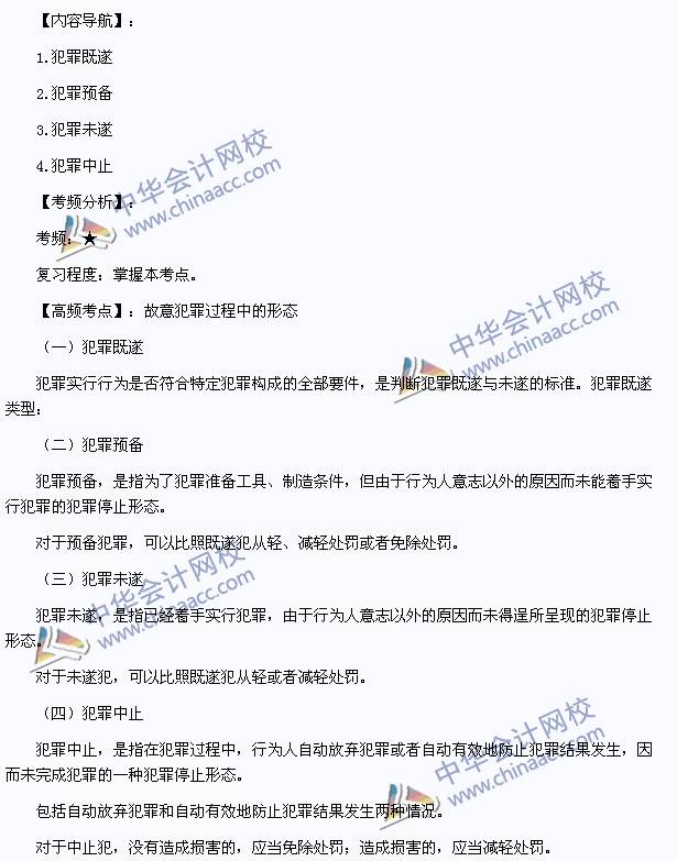 我们一起来学习2014年《税收相关法律》高频考点:故意犯罪过程中的形态。本考点属于《税收相关法律》第三篇第一章刑法基本理论第三节犯罪形态的内容。