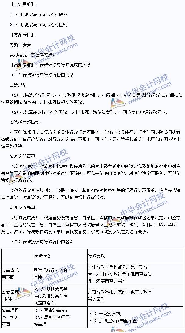 我们一起来学习2014年《税收相关法律》高频考点:行政诉讼与行政复议的关系。本考点属于《税收相关法律》第四篇第一章行政诉讼法律制度第一节行政诉讼概述的内容。