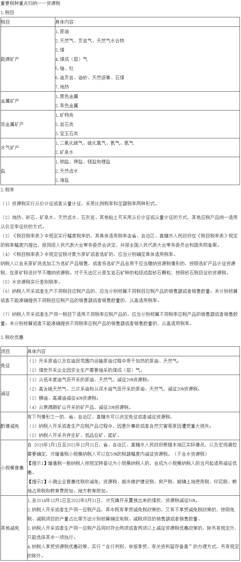 2021考前救命讲义《税法一》“资源税重点归纳”部分