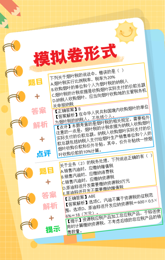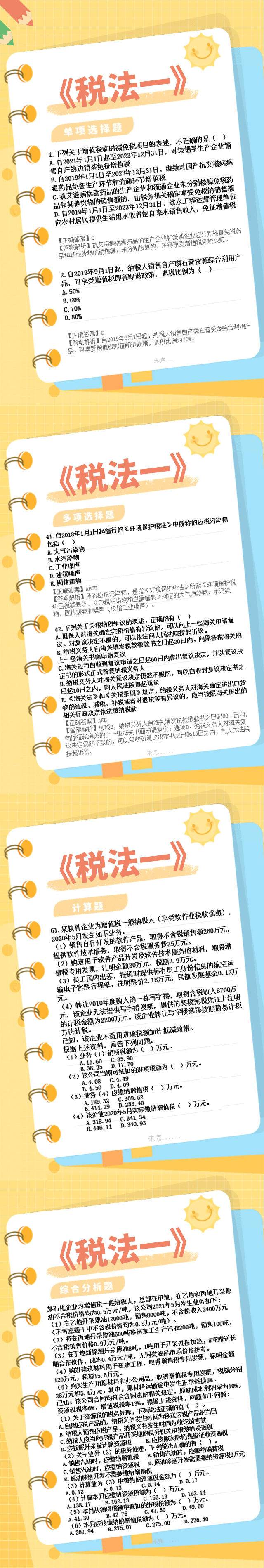 声明:因考试政策、内容不断变化与调整,网校提供的税务师考试信息仅供参考,如有异议,请考生以官网公布的内容为准。模拟卷内容为网校相关团队整理,请大家珍惜、尊重我们的劳动成果,严禁一切转载哦~