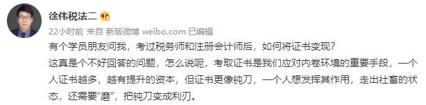 有个学员朋友问:“考过税务师和注册会计师后,如何将证书变现?”