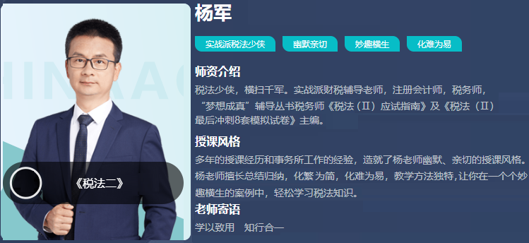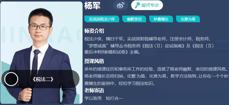 为了帮助宝宝们更好地进行税务师的备考,网校邀请了深受同学们喜爱的杨军老师来跟大家聊一聊税务师补报名的相关内容。一键预约>>