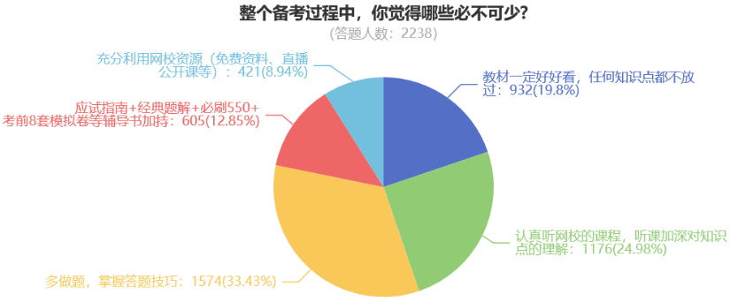 8.94%的考生认为充分利用网校资源(免费资料、直播公开课等)对于备考也很重要。
