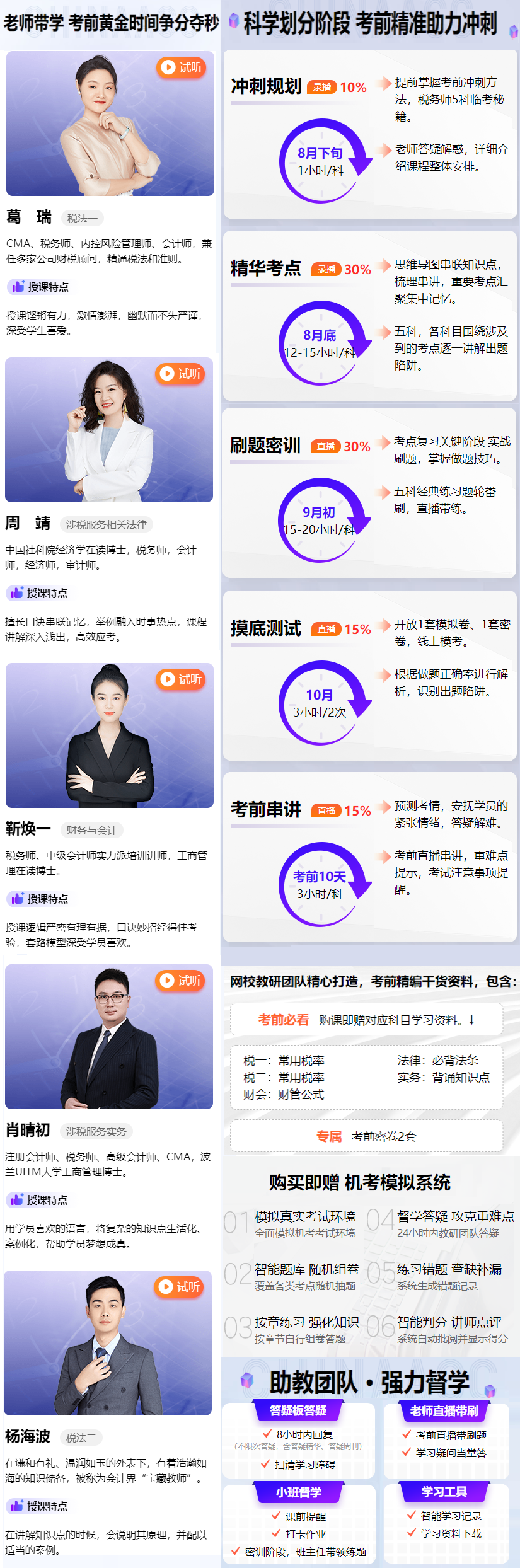 2022税务师考前刷题密训班开课!老师带学,帮你争分夺秒,不浪费任何可利用的时间,阶段性备考逐步前推复习进度。还有助教团队督学护航,全程省心备考。