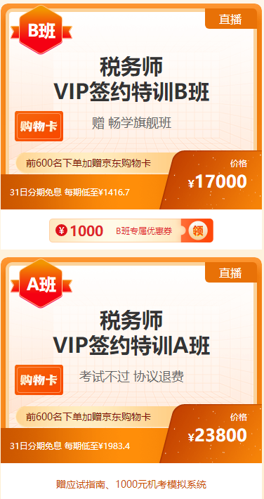 1.税务师VIP签约特训班下单前600人,限量赠送京东购物卡。