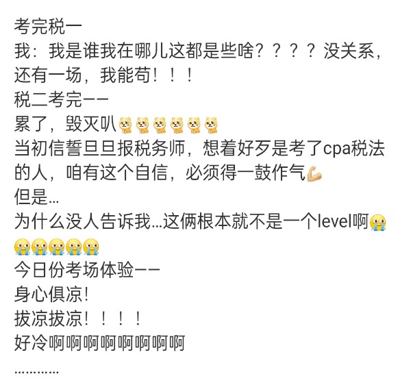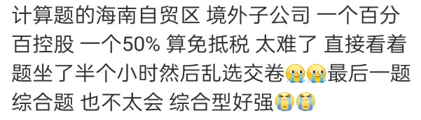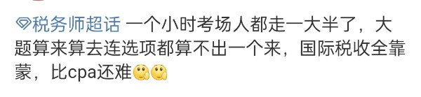 2022年税务师《税法二》考试(11.19)结束,当走出了考场的那一刻,同学们的“吐槽”便开始了,至于具体说了些什么,我们下面一起来看看吧!