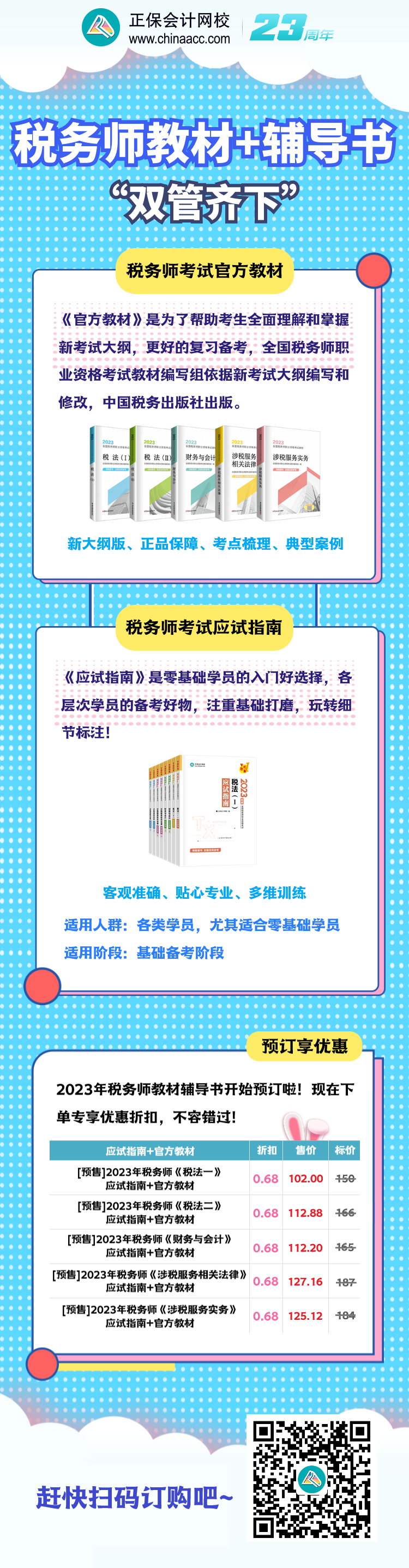 2023税务师教材辅导书预订中,专享折扣优惠,就等你来!数量有限,先到先得、先订先发货!