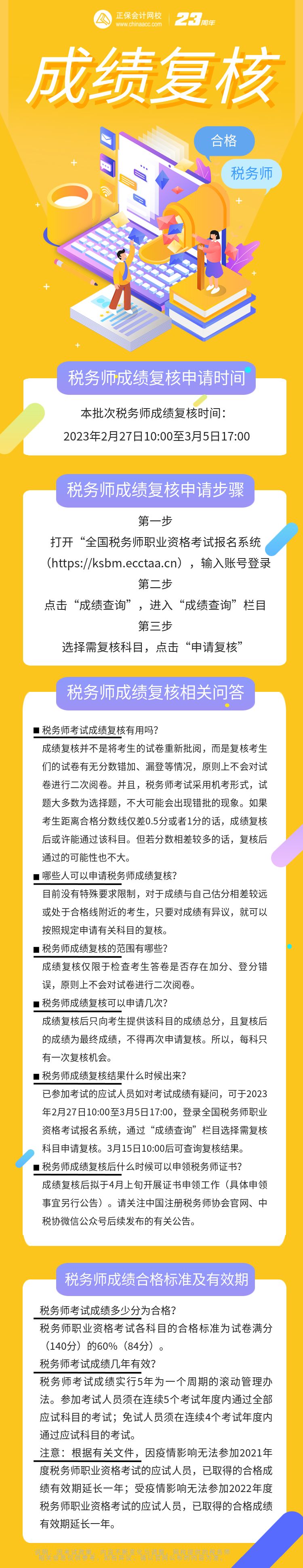 再次提醒大家,本批次税务师成绩复核时间为2023年2月27日10:00至3月5日17:00,请在规定时间内申请复核!