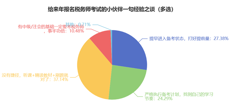 37.14%的同学认为:没有捷径,听课+精读教材+刷题就对了;