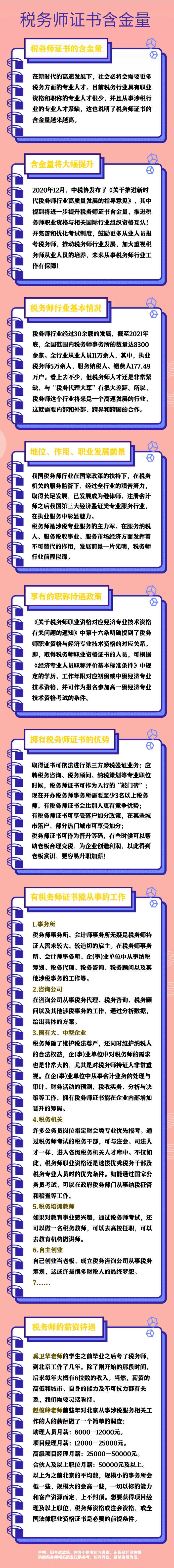 都了解清楚了?那有没有兴趣考个证呀?大家也看到税务师的价值了,报考人数越来越多,考试难度不知道以后会不会提,所以想考的一定要趁早啊!