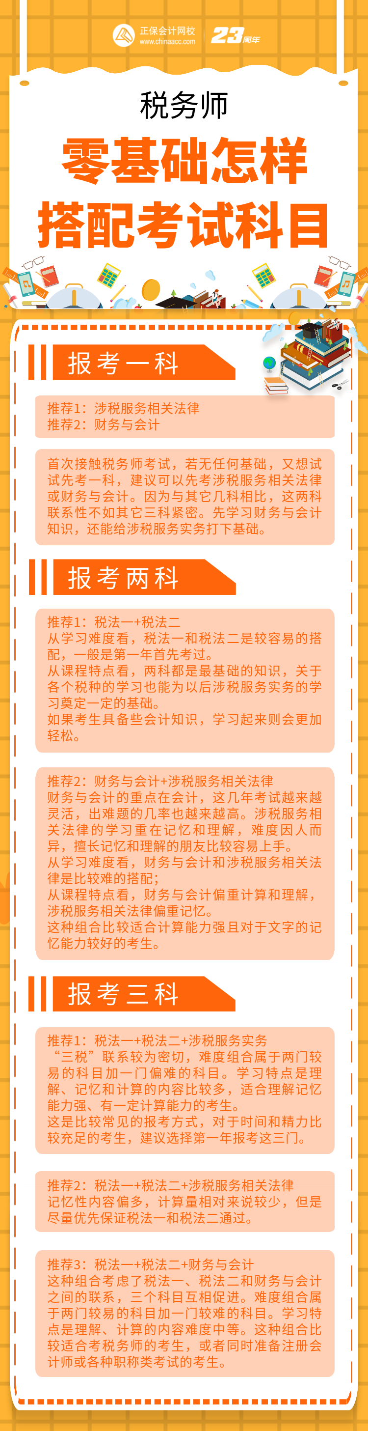 税务师报考门槛不高,所以只要满足条件,零基础考生也能拿税务师证书!税务师考试一共有5科,零基础的同学先要选好考试科目,快来看看科目搭配的建议吧!