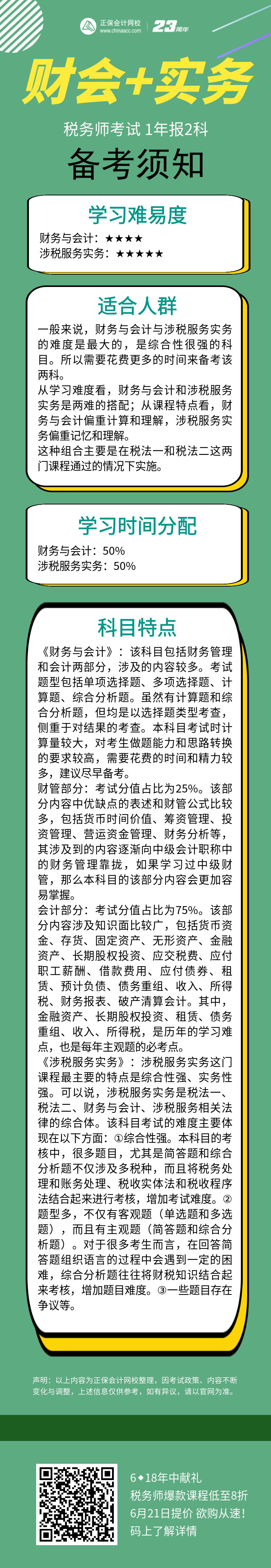 《财务与会计》和《涉税服务实务》算是税务师考试中难度较高的两科,但是如果你的时间充裕且基础还不错,建议把财会和实务放在首年考,这种搭配也适合刚刚考过或正在备战会计职称或注会的同学。