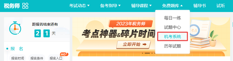 路径:正保会计网校→“税务师”栏目→“免费题库”→“机考系统”
