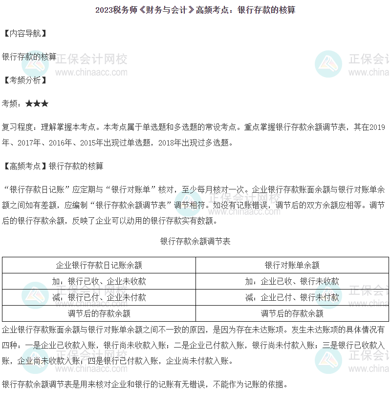 2023年税务师备考正在进行中,网校为各位考生整理了2023年税务师考试《财务与会计》第八章的高频考点——银行存款的核算,正在复习的同学快来查收!