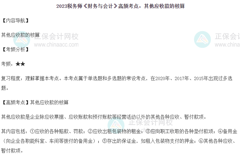 2023年税务师备考正在进行中,网校为各位考生整理了2023年税务师考试《财务与会计》第八章的高频考点——其他应收款的核算,正在复习的同学快来查收!
