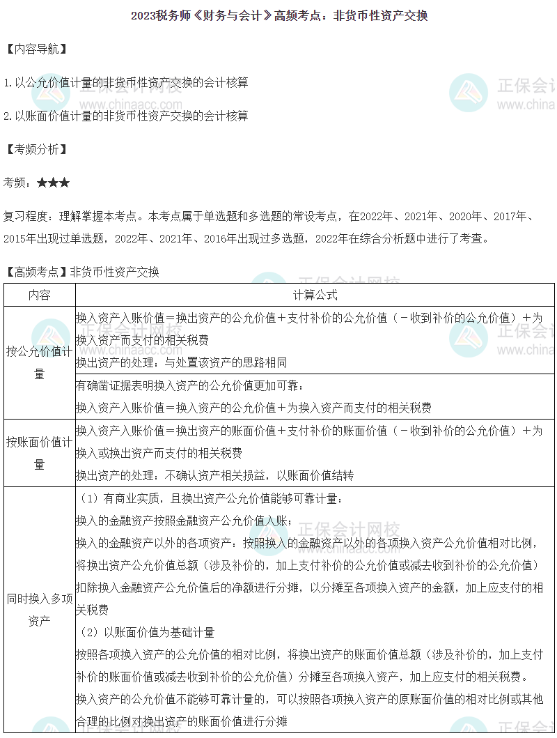 2023年税务师备考正在进行中,网校为各位考生整理了2023年税务师考试《财务与会计》第九章的高频考点——非货币性资产交换,正在复习的同学快来查收!