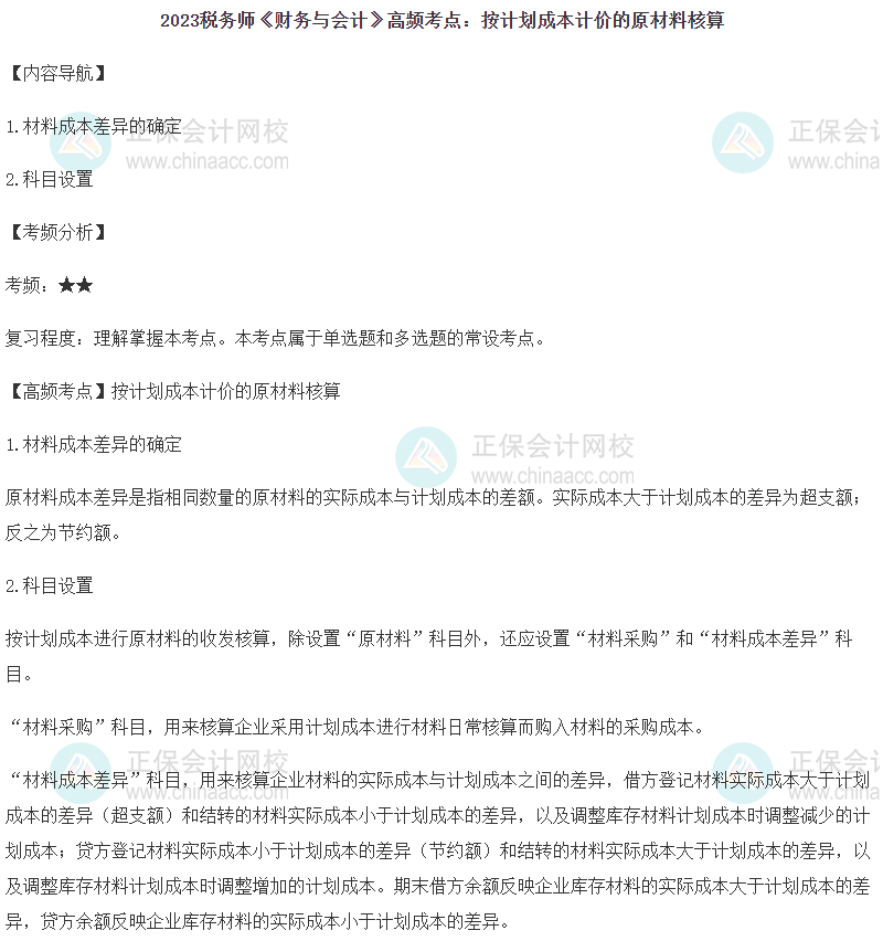 2023年税务师备考正在进行中,网校为各位考生整理了2023年税务师考试《财务与会计》第九章的高频考点——按计划成本计价的原材料核算,正在复习的同学快来查收!