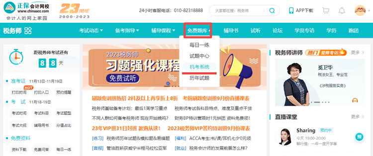 2023年税务师考试定于11月18、19日举行,建议考生在上考场前去网校的机考模拟系统适应一下,提前熟悉考试环境。