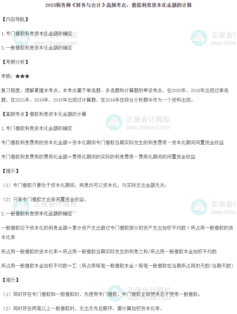 2023年税务师备考正在进行中,网校为各位考生整理了2023年税务师考试《财务与会计》第十三章的高频考点——借款利息资本化金额的计算,正在复习的同学快来查收!