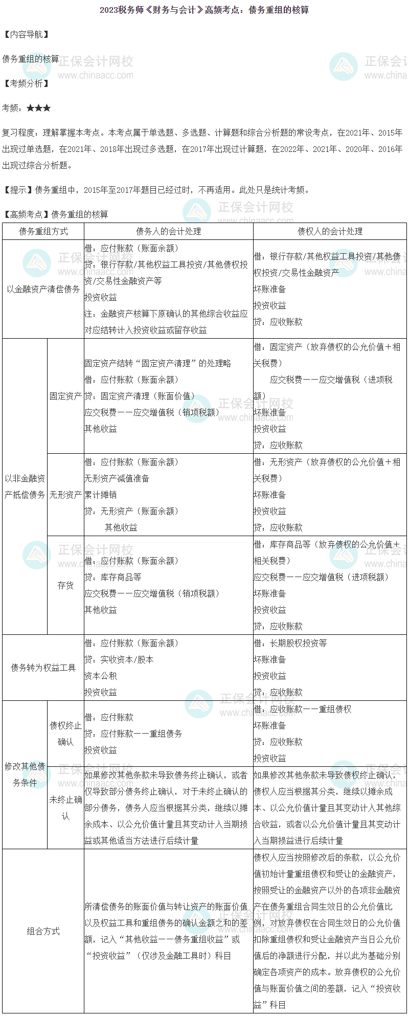2023年税务师备考正在进行中,网校为各位考生整理了2023年税务师考试《财务与会计》第十三章的高频考点——债务重组的核算,正在复习的同学快来查收!