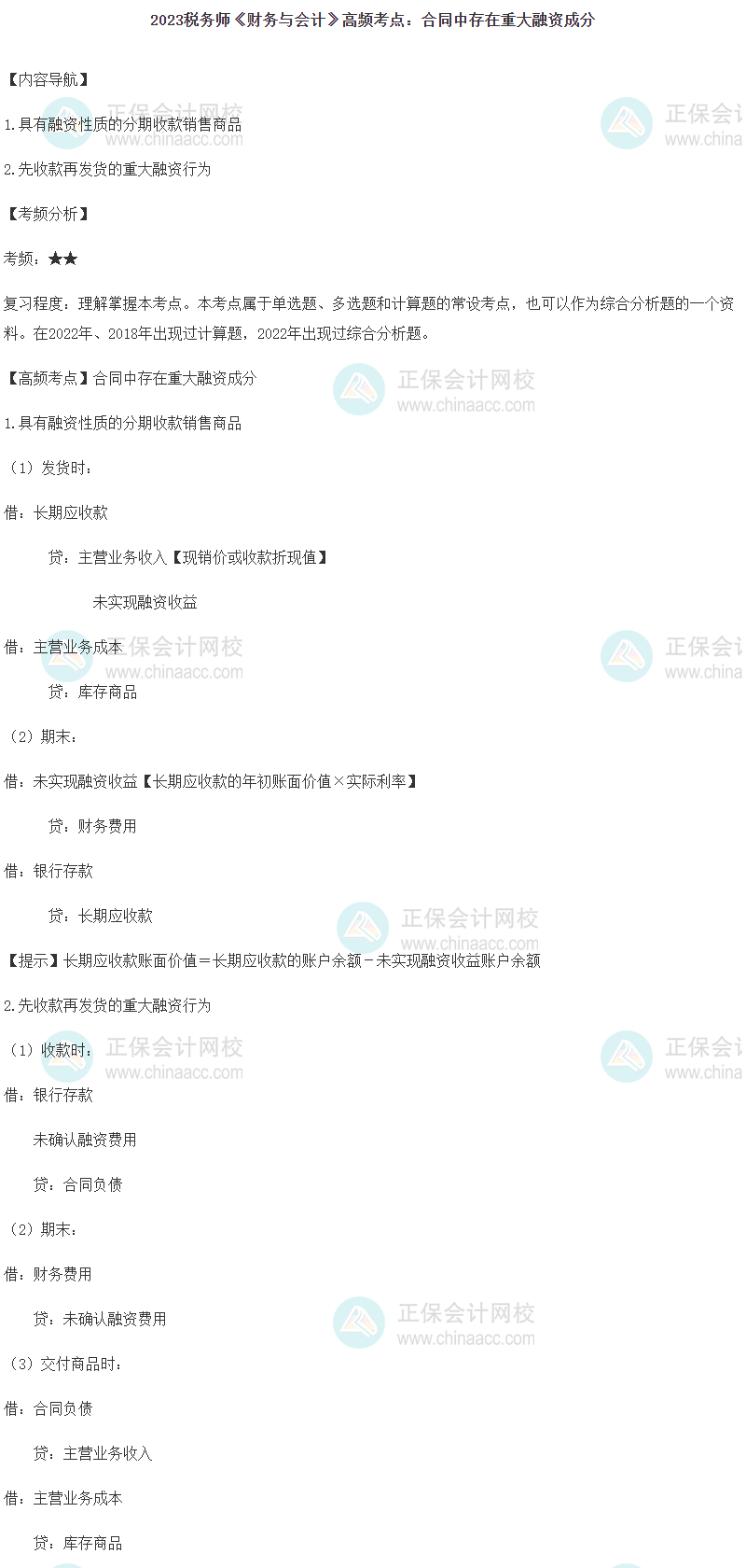 2023年税务师备考正在进行中,网校为各位考生整理了2023年税务师考试《财务与会计》第十五章的高频考点——合同中存在重大融资成分,正在复习的同学快来查收!